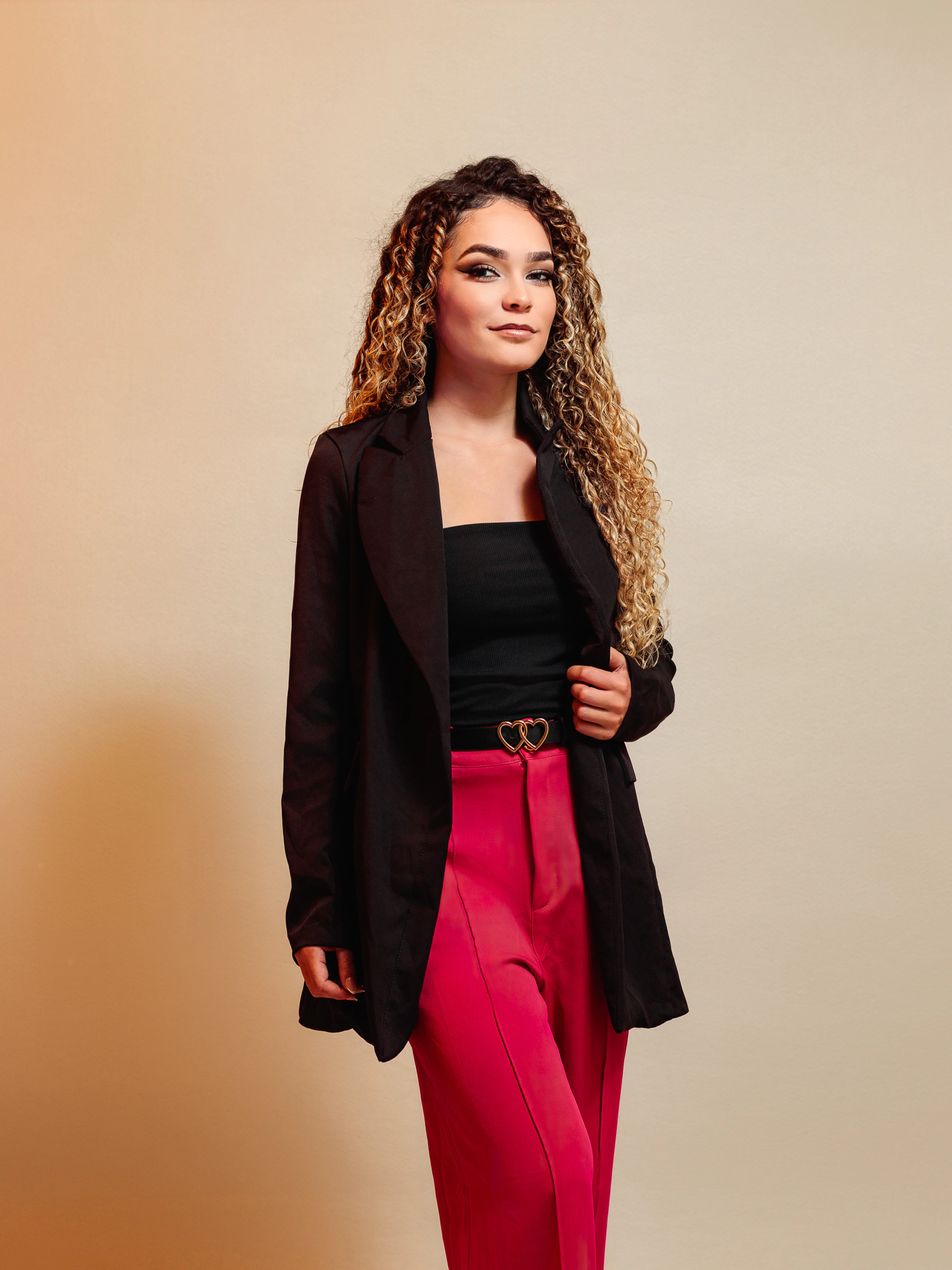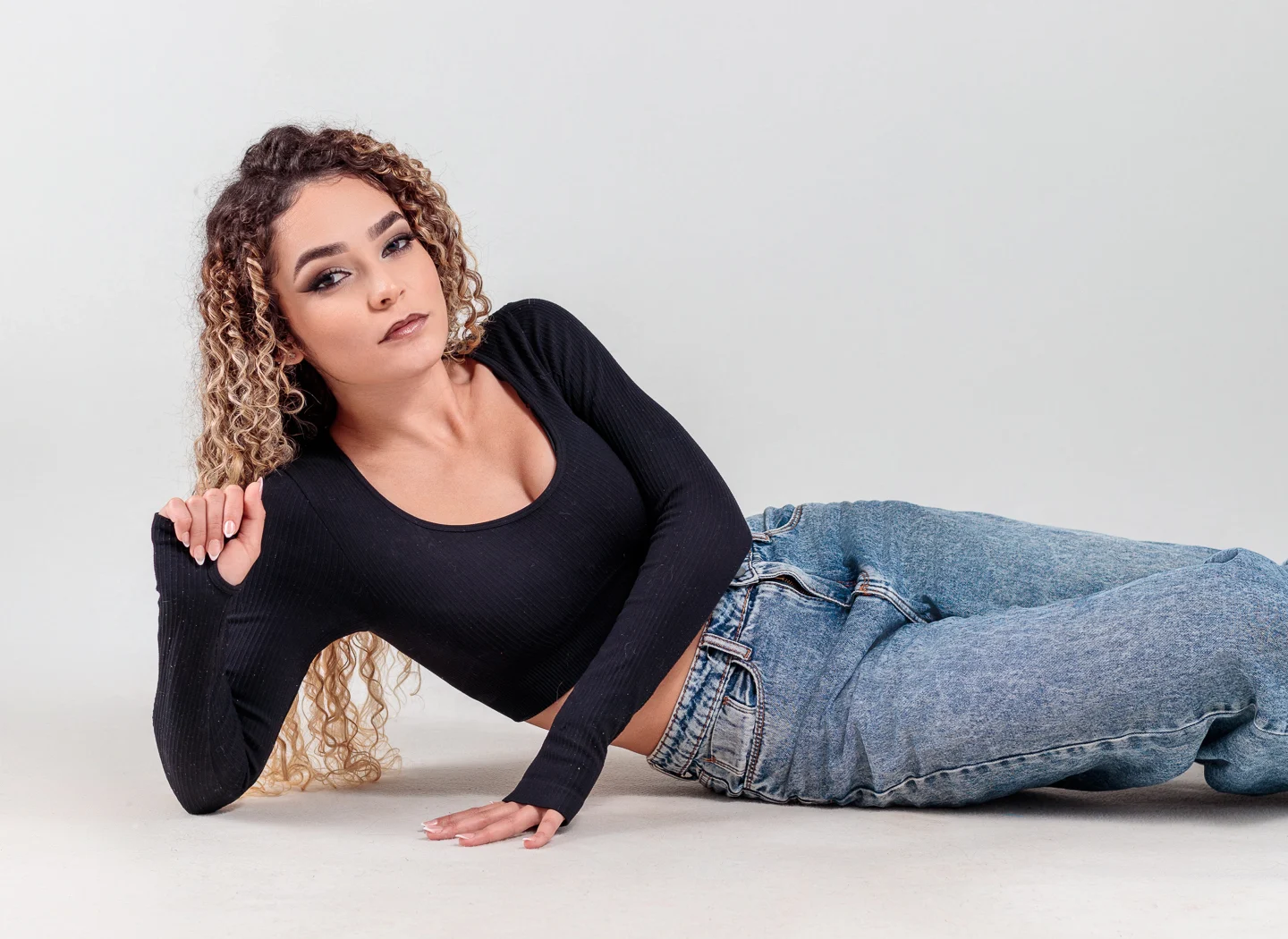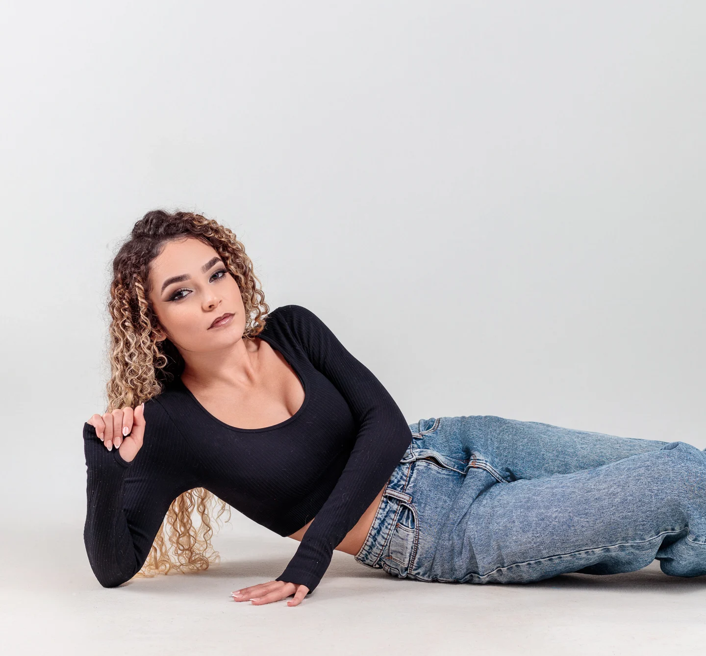 Um ensaio fotográfico moderno, minimalista e cheio de autenticidade. A suavidade do fundo neutro valoriza ainda mais os detalhes da modelo, trazendo destaque para sua expressão confiante, os traços delicados e a beleza natural.