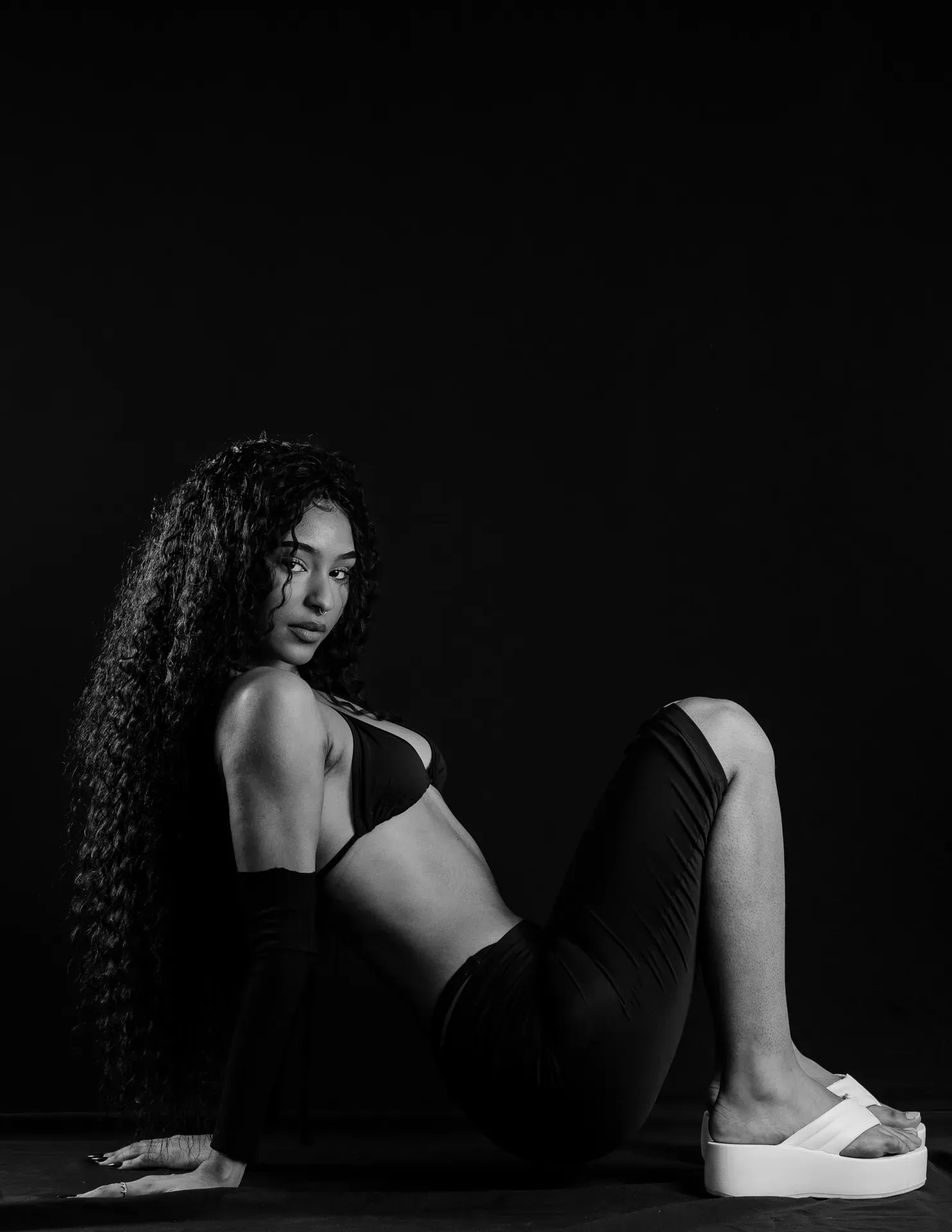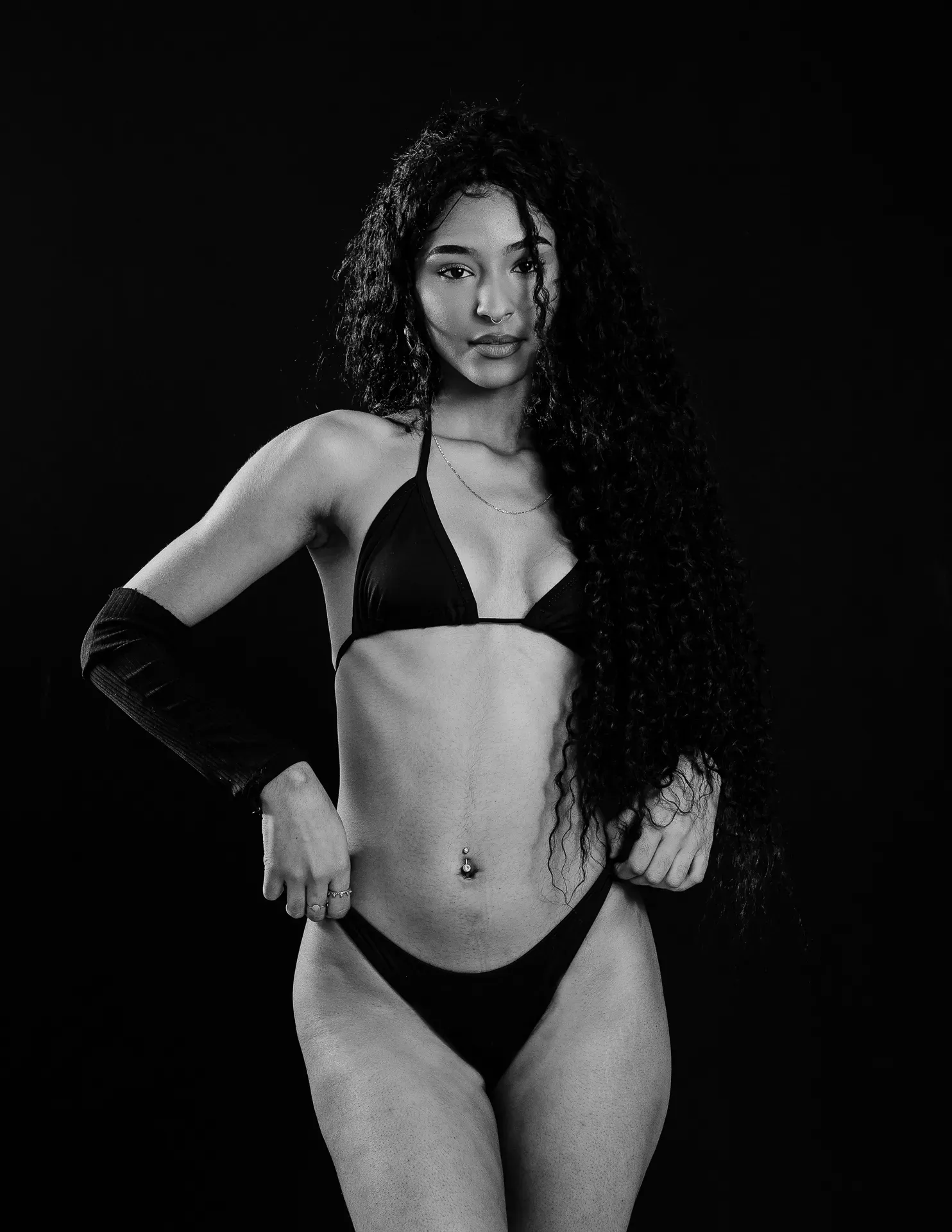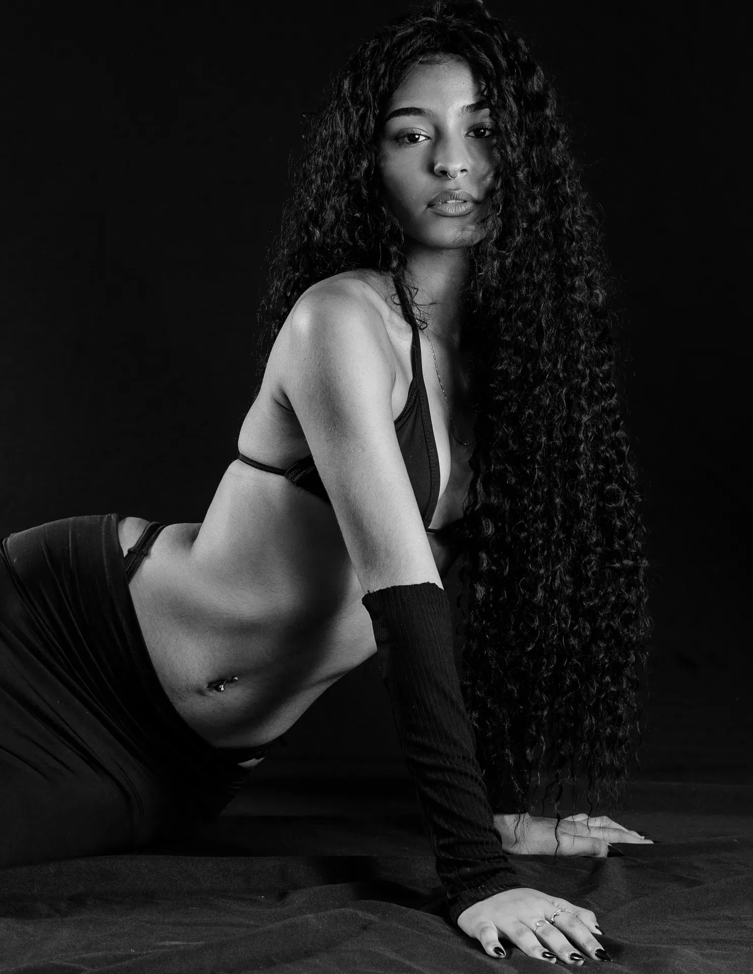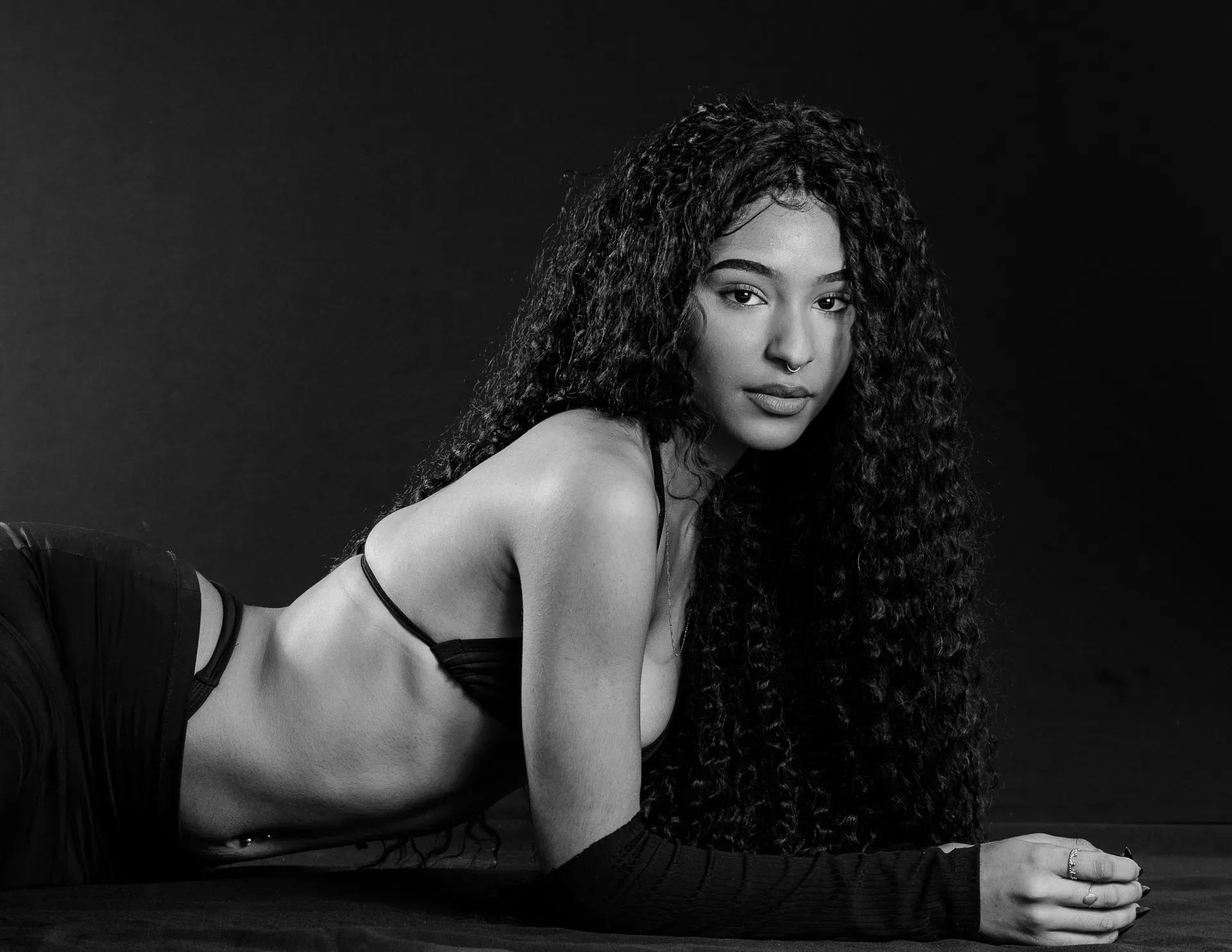 Neste ensaio, buscamos destacar toda a elegância e versatilidade de Evilyn Alves, utilizando o minimalismo do fundo preto para realçar sua presença e expressão diante das lentes. A simplicidade do cenário contrasta com a riqueza de detalhes capturados, dando enfoque total à beleza e à postura da modelo.