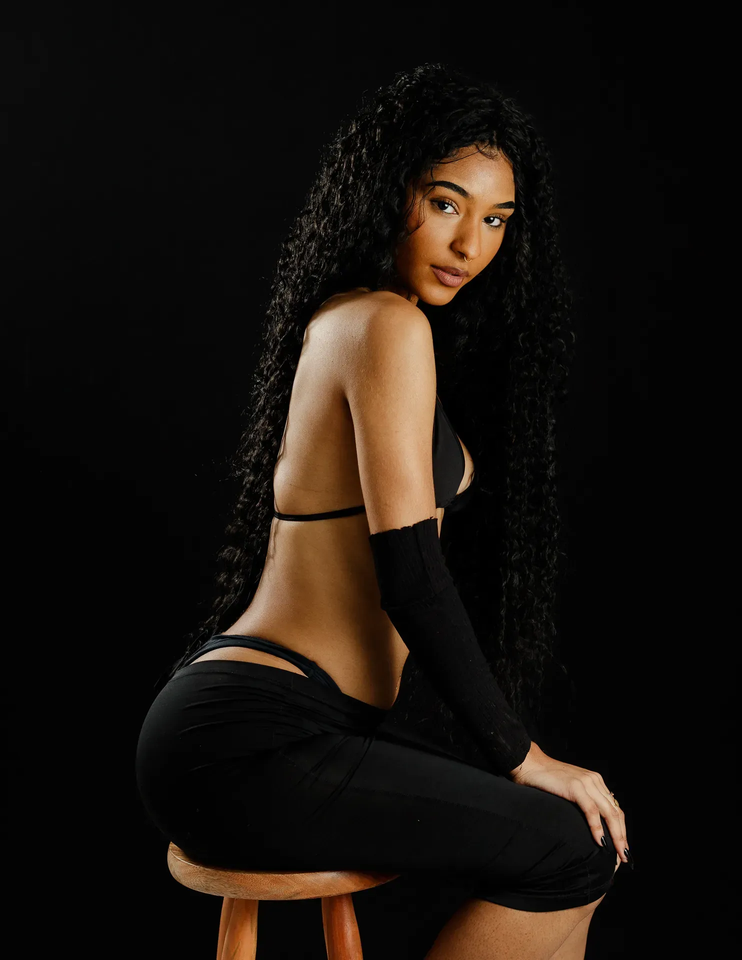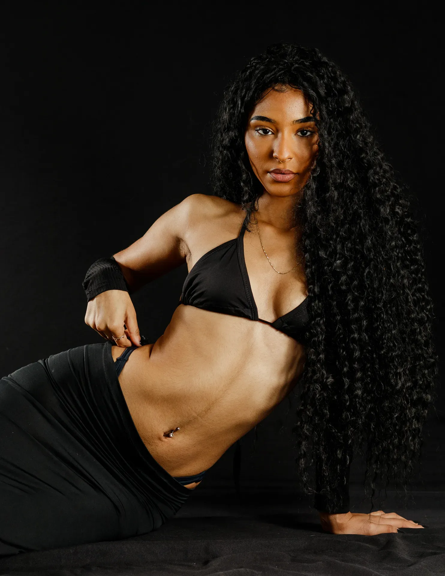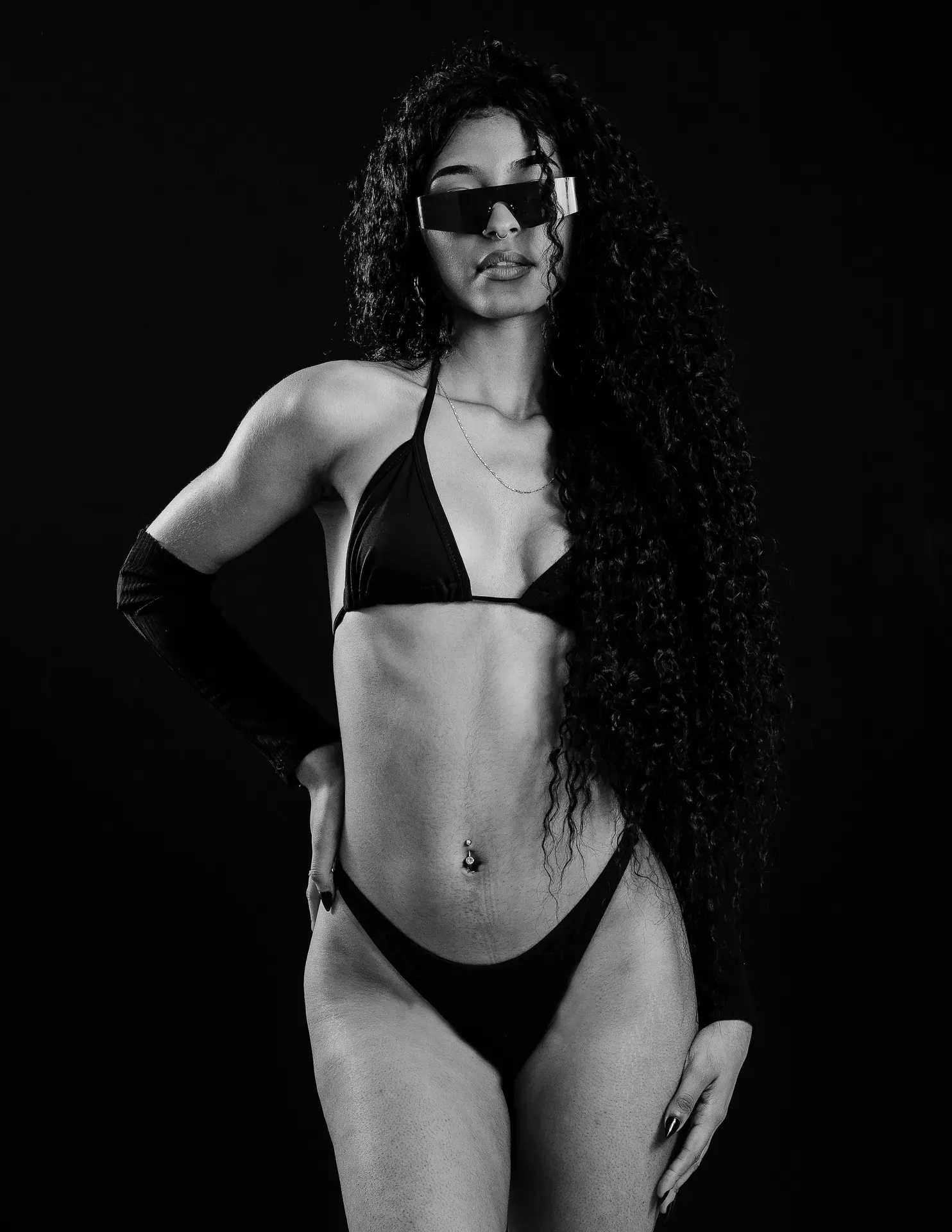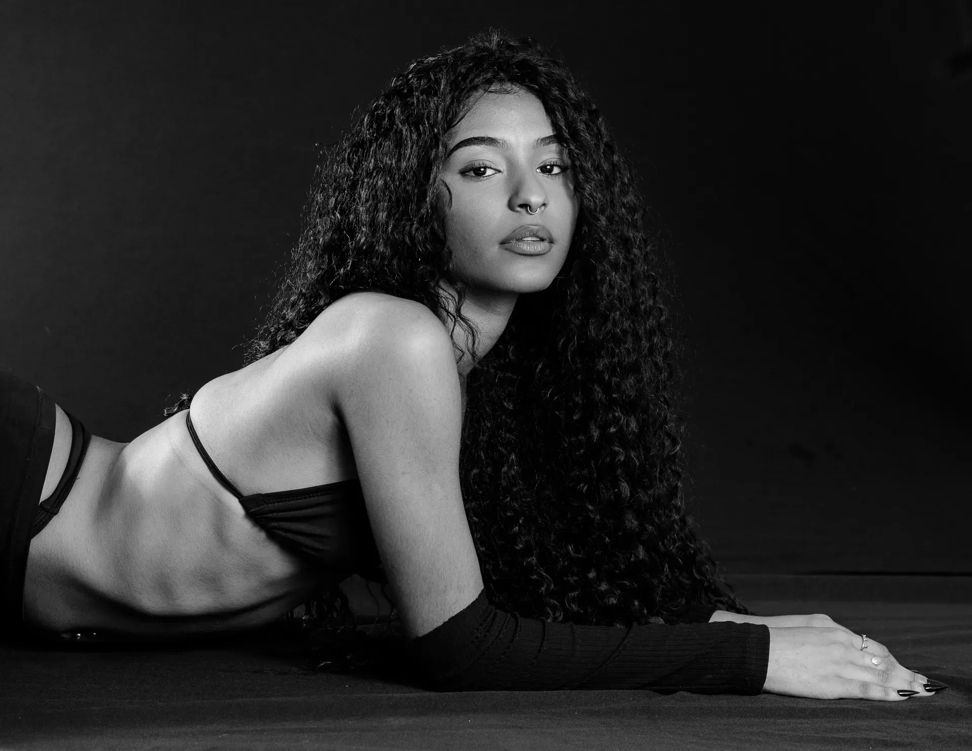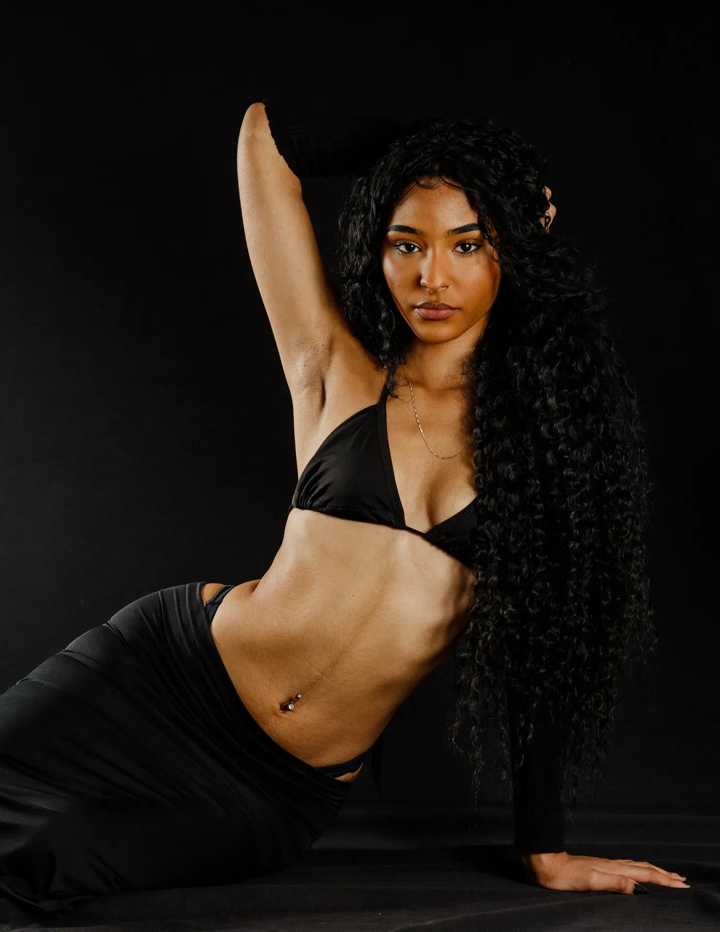 Neste ensaio, buscamos destacar toda a elegância e versatilidade de Evilyn Alves, utilizando o minimalismo do fundo preto para realçar sua presença e expressão diante das lentes. A simplicidade do cenário contrasta com a riqueza de detalhes capturados, dando enfoque total à beleza e à postura da modelo.