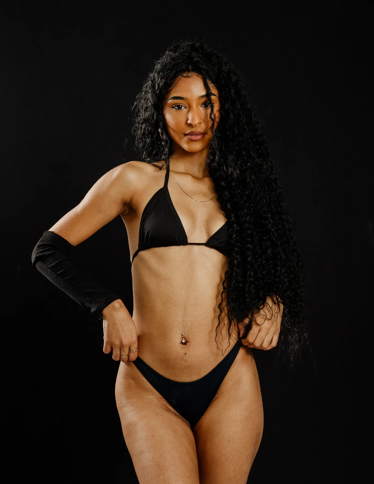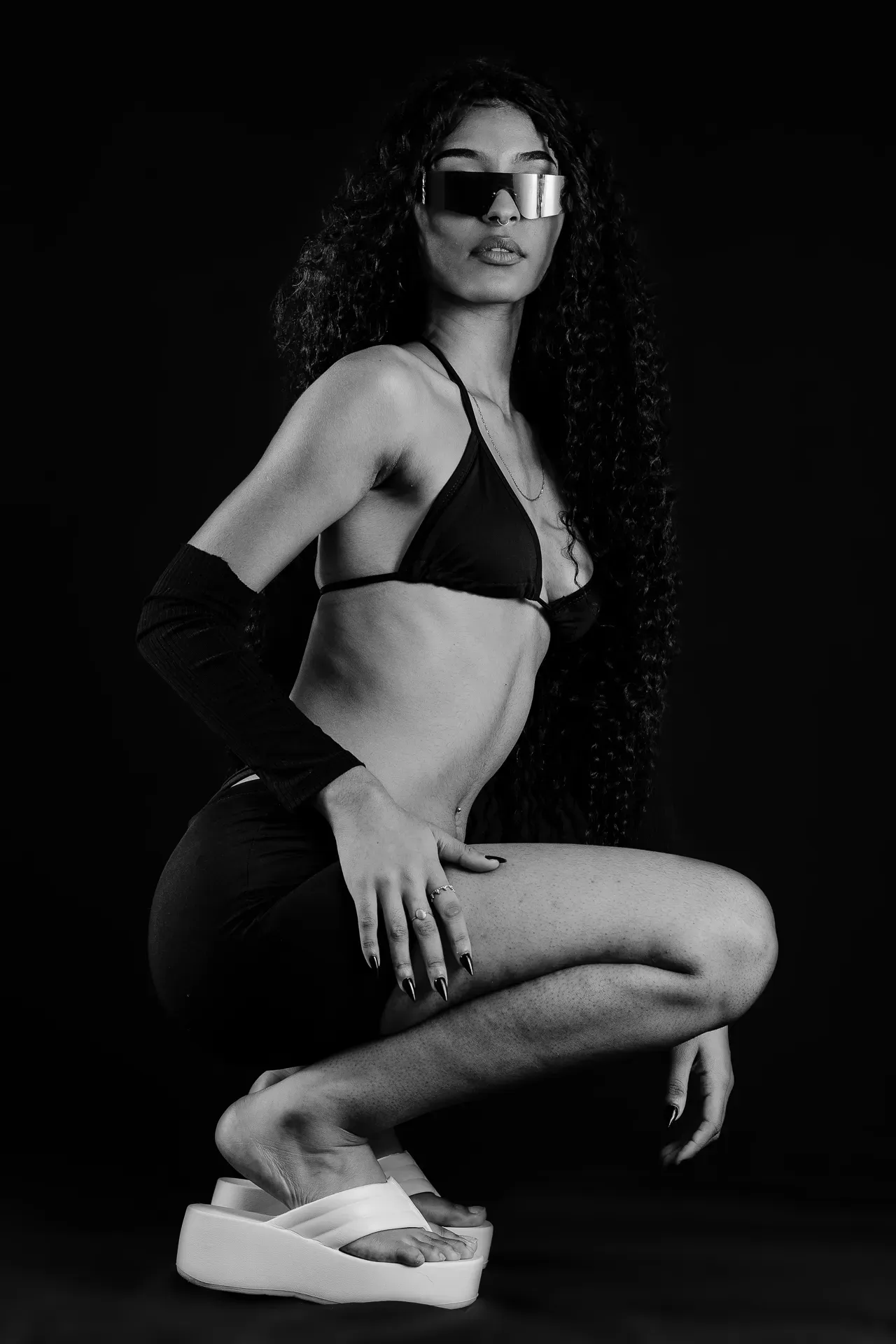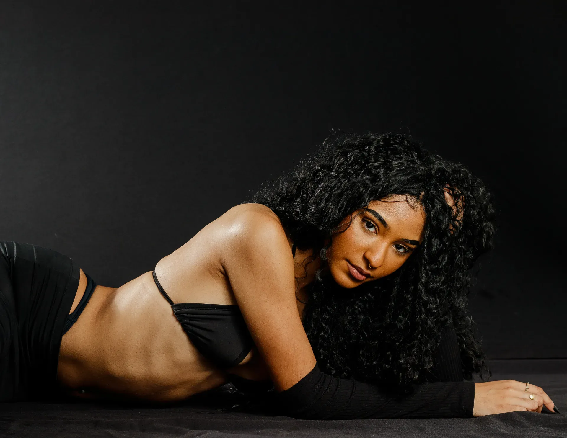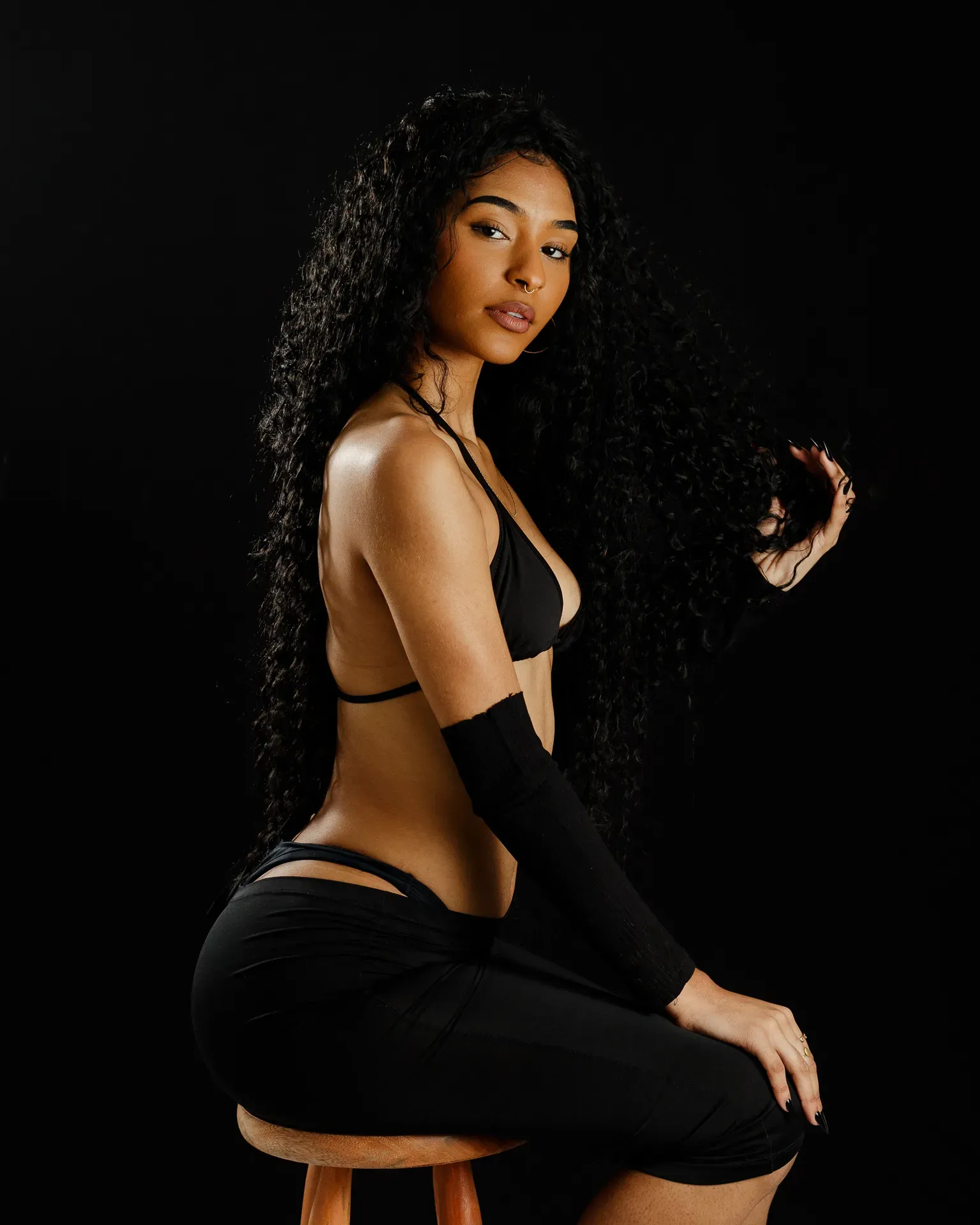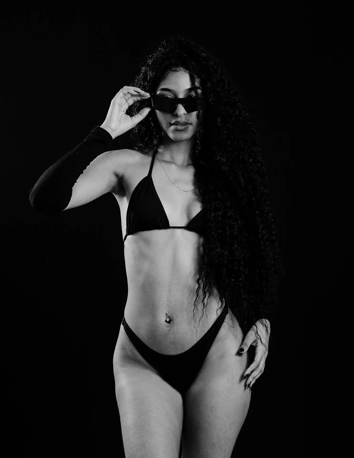 Neste ensaio, buscamos destacar toda a elegância e versatilidade de Evilyn Alves, utilizando o minimalismo do fundo preto para realçar sua presença e expressão diante das lentes. A simplicidade do cenário contrasta com a riqueza de detalhes capturados, dando enfoque total à beleza e à postura da modelo.