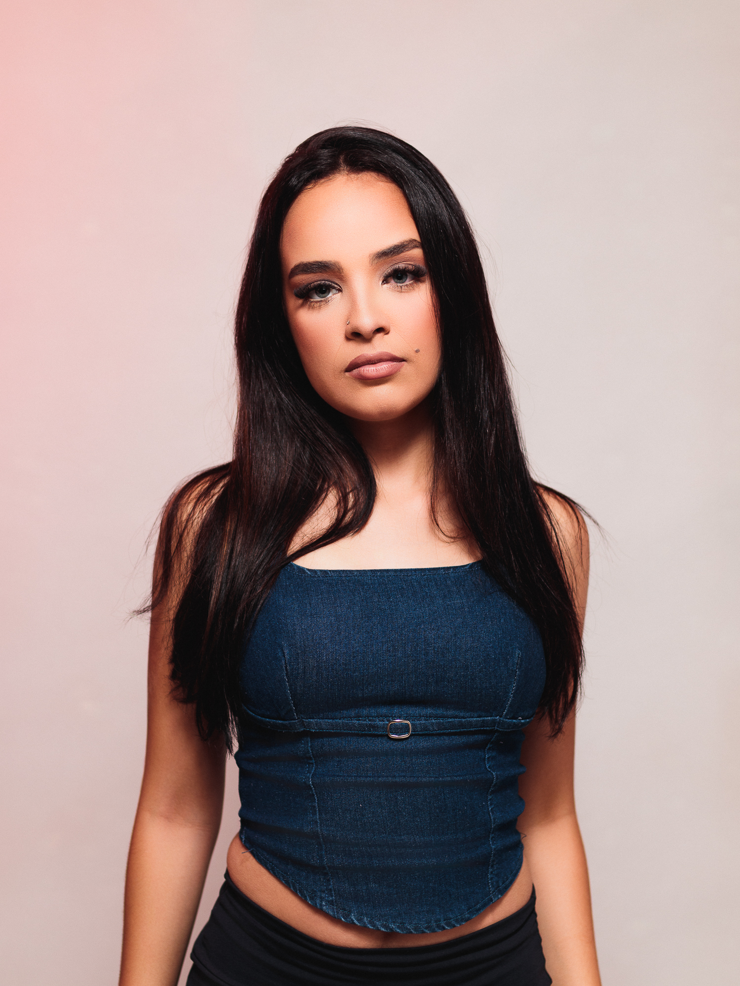 Ensaio fotográfico feminino em estúdio com iluminação dramática e retrato artístico. As fotos destacam um olhar intenso voltado para a luz, criando um clima cinematográfico e elegante. O contraste entre sombras profundas e iluminação suave valoriza a expressão, os detalhes do rosto e a atmosfera do retrato. Este tipo de fotografia é ideal para quem busca um ensaio profissional, retratos marcantes para portfólio, redes sociais ou projetos artísticos. O trabalho valoriza direção de modelo, composição e tratamento de imagem para criar fotografias sofisticadas e atemporais. Um ensaio pensado para revelar personalidade, beleza natural e presença através da fotografia profissional.