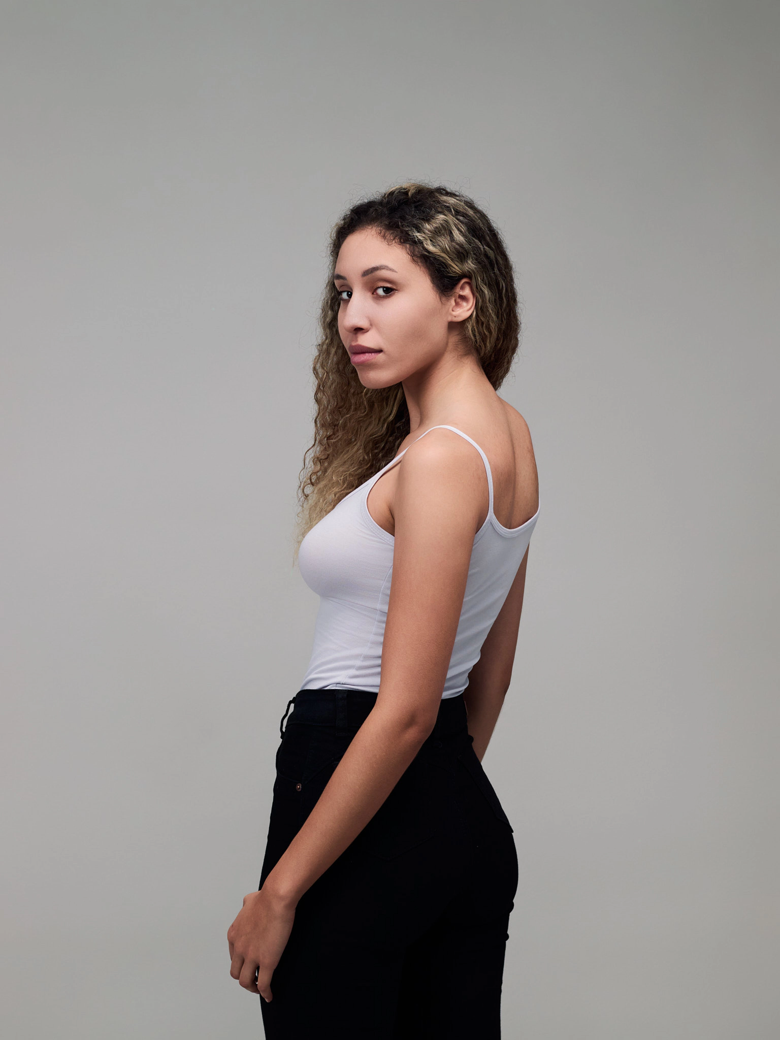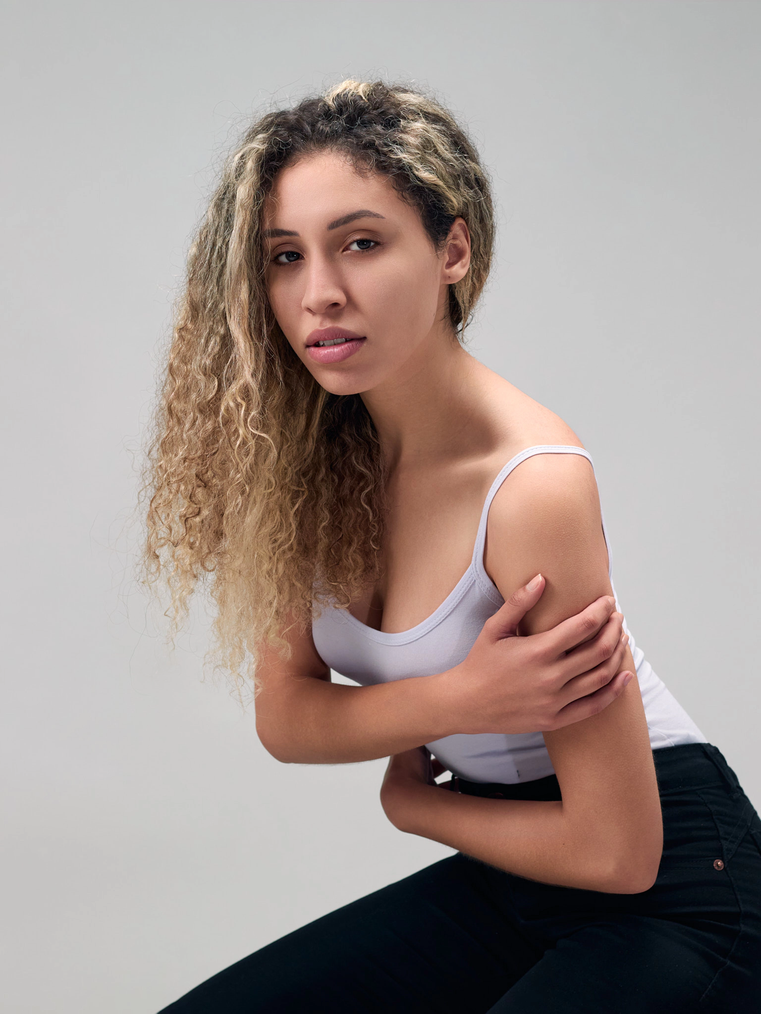 Com iluminação suave e composição minimalista, o ensaio valoriza os traços naturais e a presença cativante da modelo — uma estética perfeita para portfólio fashion, agências de modelos e direcionamento editorial.